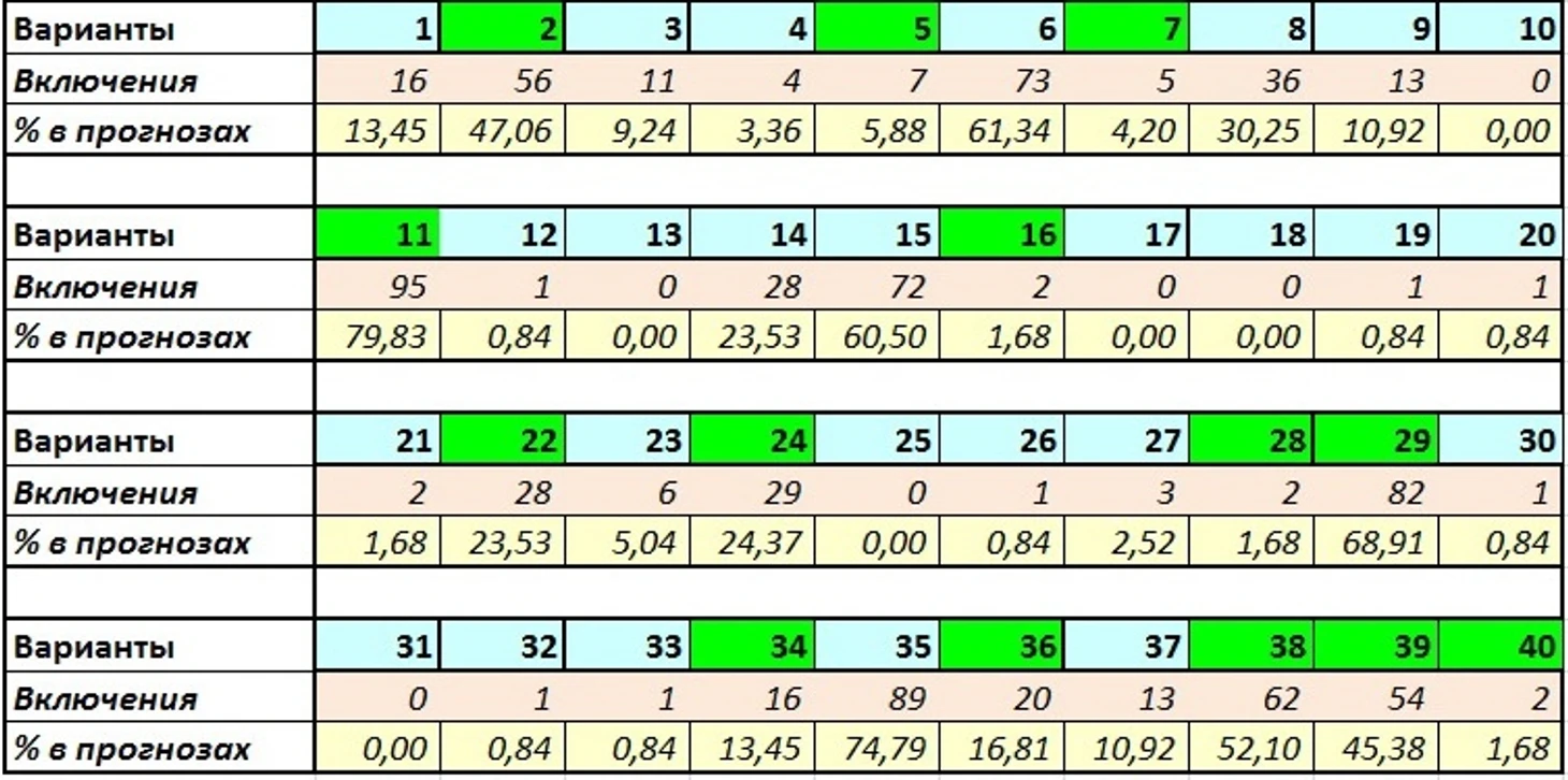 Сыграно вариантов: 14 (2-5-7-11-16-22-24-28-29-34-36-38-39-40)