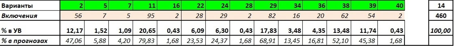 Сумма угаданных вариантов: 460 из 833 (55,22%)