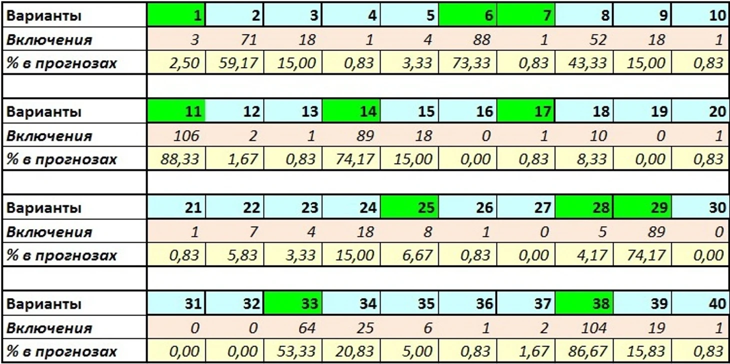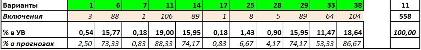 Сыграно вариантов: 11 (1-6-7-11-14-17-25-28-29-33-38)