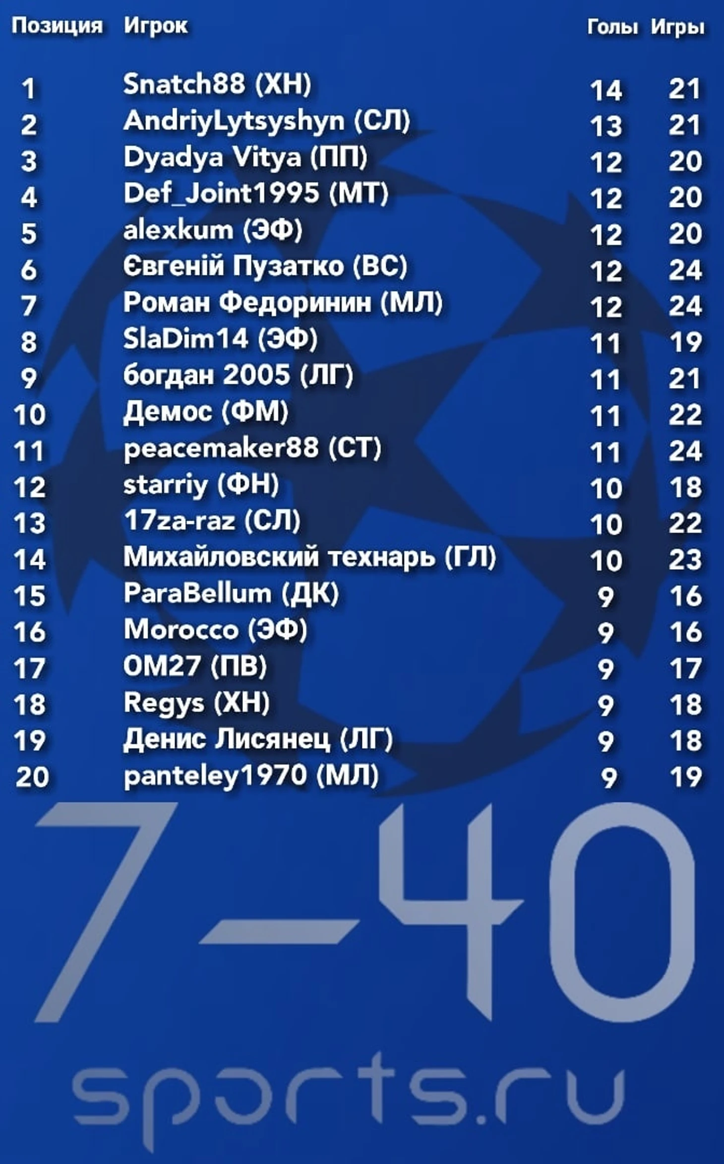 Ещё их игрок, tolkachiov, что сейчас, что в 10-м туре выбил максимум – 7 УВ;