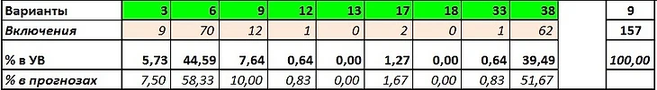 Сумма угаданных вариантов: 157 из 840 (18,69%)
