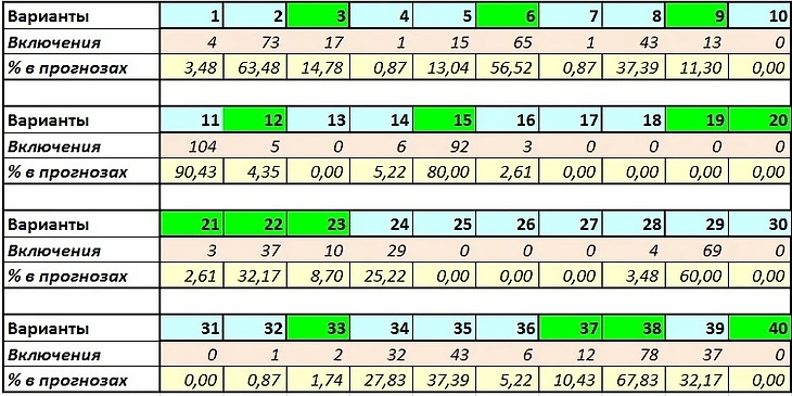 Сыграно вариантов: 14 (3-6-9-12-15-19-20-21-22-23-33-37-38-40)