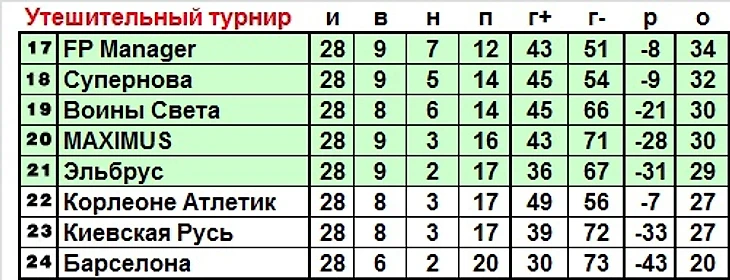 Привет, набравшиеся сил игроки в 7-40! Впереди самые важные матчи сезона, надеюсь, все находятся в наилучшей форме перед ними. Половина команд проведёт матчей семь-восемь, где-то так :) Расшифровываю: из 16 команд, вышедших в плов, 8, увы, сыграют только две игры, ещё 4 – четыре, остальные 4 – восемь. Дело в том, что все стадии плей-офф будут двухматчевыми, по обычной схеме в 7 вариантов (без дополнительных секций). Также пройдут два финала: за золото и серебро сезона, а также за бронзу. Они тоже будут по этой схеме. Считаться в первую очередь будут набранные очки, во вторую – разница голов в конкретной стадии, в третью – УВ в раунде, затем уже сезонный рейтинг и жребий, если потребуется. Но и 8 не дошедших до этих разборок команд тоже не будут сидеть сложа руки. Их ждёт “утешительный” турнир в один круг с сохранением набранных в регулярке очков, имеющий вполне серьёзную цель: три худшие команды будут отправлены в квалификационный межсезонный турнир, если, конечно, наберутся претенденты на участие в новом сезоне. Я постарался изложить всё максимально подробно, но всё же перед разбором заключительного тура регулярки отправляю вас изучить вот этот пост.