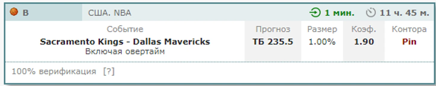 Оба коллектива входят в топ-5 по Лиге. Вполне можно предположить и сегодня игра будет быстрой. Атака Далласа хороша, Сакраменто не такая уж и ужасная. Защиты обоих коллективов оставляют желать лучшего. Ничего другого кроме общего верха я не вижу. Пускай даже и достаточно высокого, но верха. К слову, две с трех игр в регулярке до остановки сезона команды провели очень результативно.