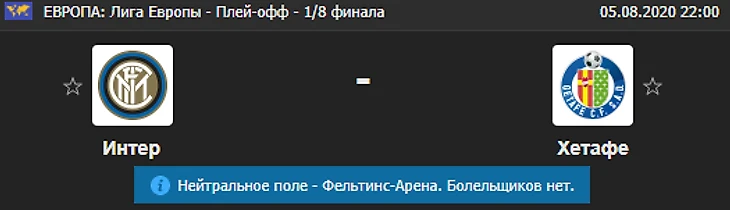 Интеру нужно существенно облажаться, или привезти пенальти, что бы пропустить от этого Хетафе. Который будет играть от защиты, возможно с мыслью об шальном мяче, но главное - они умеют играть в защите, и задействуют ее в сегодняшнем матче. Всего 17 пропущенных мячей на выезде в Примере, лучше только у Реала (14) и Атлетико (16). Касаемо Интера, они попытаются продавить за счет Лукаку и Лаутаро, а там как пойдет. Я не сомневаюсь что Интер захватит преимущество и будет пытаться закатить мяч в ворота Хетафе, но не уверен что легко получится, здесь что 3-0 может быть, что 0-0, но вот что реальнее - это отсуствие гола от гостей, не тот у них соперник, против которого у Хетафе будут шансы на голы, а сама схема игры Интера невероятно неудобной должна быть для гостей. Им нечего противопоставить двум опорникам и трем ЦЗ, это и оставит Хетафе без гола.