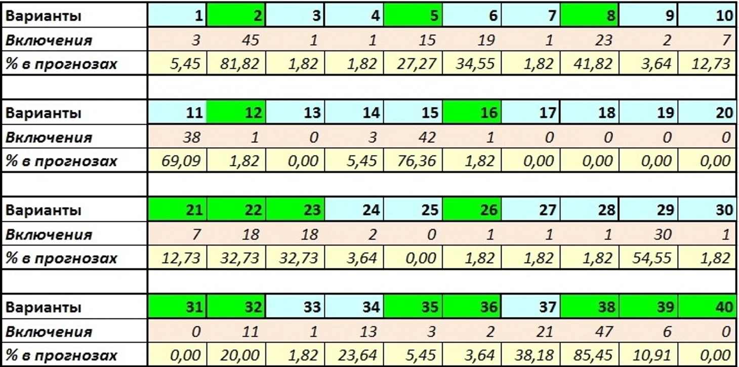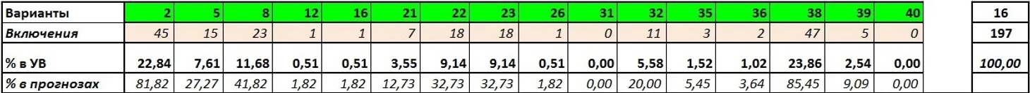 Сыграно вариантов: 16 (2-5-8-12-16-21-22-23-26-31-32-35-36-38-39-40)