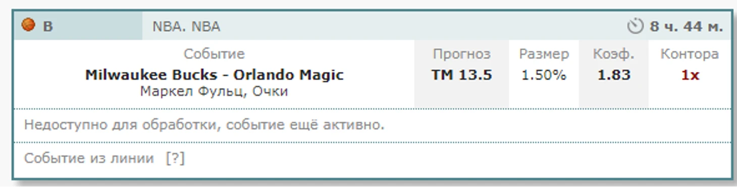 Сегодня букмекер дает на разыгрывающего Орландо тотал в 13,5 очков. Опекает Фульца практически 50% времени Эрик Блэдсоу, заберите перехват или лишнюю трешку и Маркел уже не дотягивает до тотала. Сомневаюсь в возможности корявенького в плане броска игрока дважды подряд показать очень хорошую игру. Пусть пасы отдает, а не занимается скоррингом.