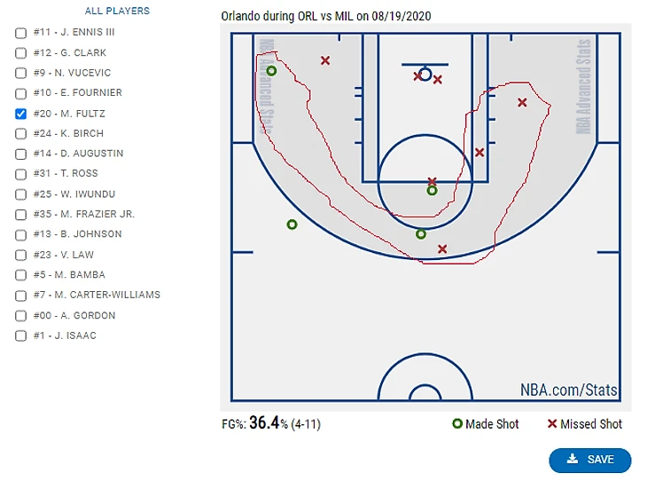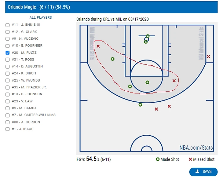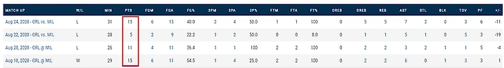 Ниже представлена статистика разыгрывающего Орландо по играм с Бакс: