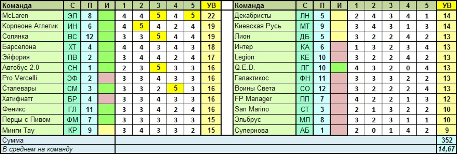 Лучший игрок тура по УВ: bramberg, Bohdan Beka (оба – McLaren), mfc_riverside (Корлеоне Атлетик), Брулин (Солянка), Женёк Гончаров (Автобус 2.0), Dnipro calcio fan (Сталевары) – 5 вариантов