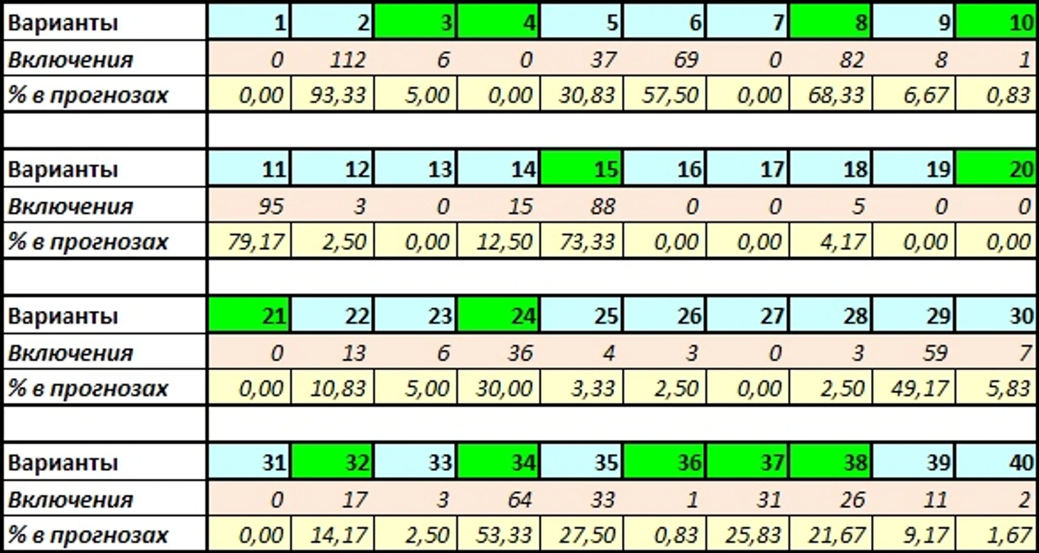 Сумма угаданных вариантов: 352 из 840 (41,91%)