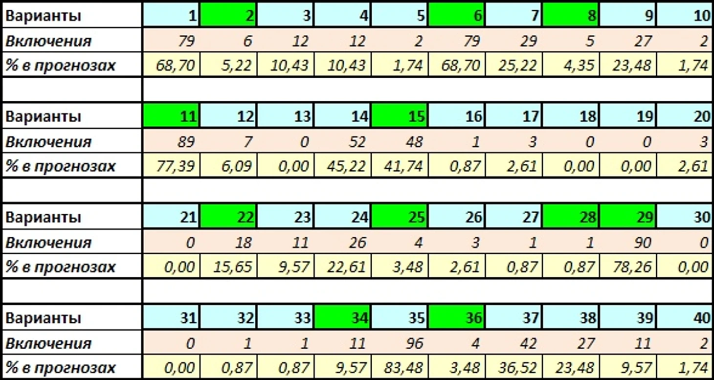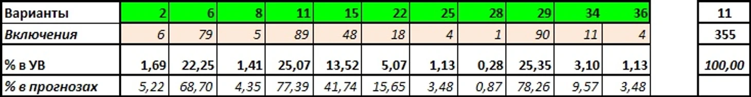 Сыграно вариантов: 11 (2-6-8-11-15-22-25-28-29-34-36)