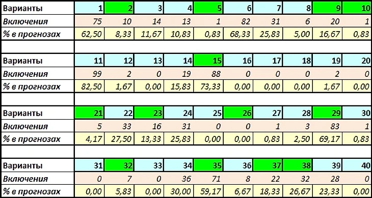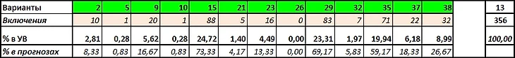 Сумма угаданных вариантов: 356 из 840  (42,38%)