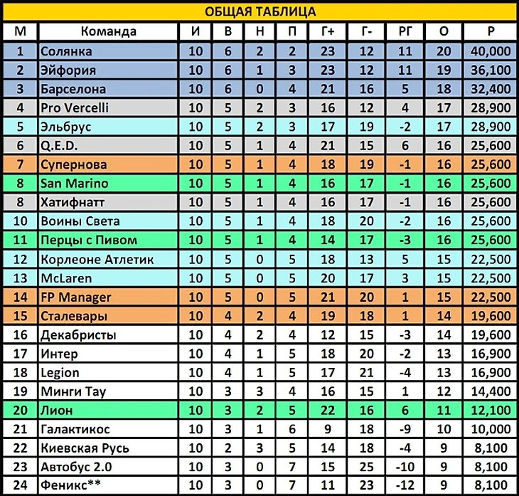 В седьмом туре Эйфория проиграла Эльбрусу, а теперь вот Легиону. Но в исходы таймов эйфы не решились лезть, доверившись надёжному варианту 29, зашедшему трижды. Однако у легионеров по два раза активизировались 5-й и 24-й варианты, и теперь им остался всего шаг до зоны плей-офф.