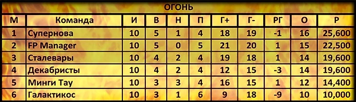 Дивизион Огонь держится сплочённо, но ближе к середине общей таблицы;