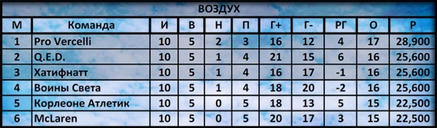 В Дивизионе Воздух толчея, по сравнению с прошлым туром обновилась вся тройка лидеров, а первое и последнее место разделяют всего два пункта;