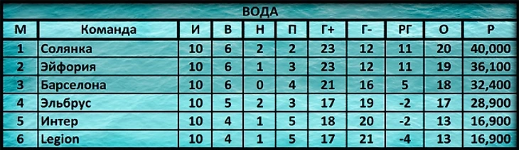 Лидерство Дивизиона Вода отражает общее лидерство: все три его первых места заняли весь пьедестал общего зачёта, ещё один представитель, Эльбрус, рвётся туда попасть;