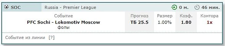(-) Сочи - Локомотив, фолы ТБ 25.5 (1.8) 1xbet