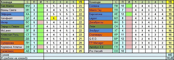 Лучшая команда тура по сумме УВ в целом: Воины Света, San Marino – 23 варианта