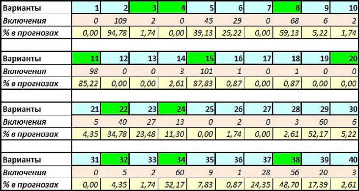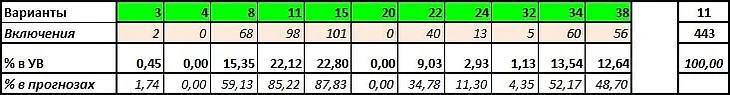Сыграно вариантов: 11 (3-4-8-11-15-20-22-24-32-34-38)