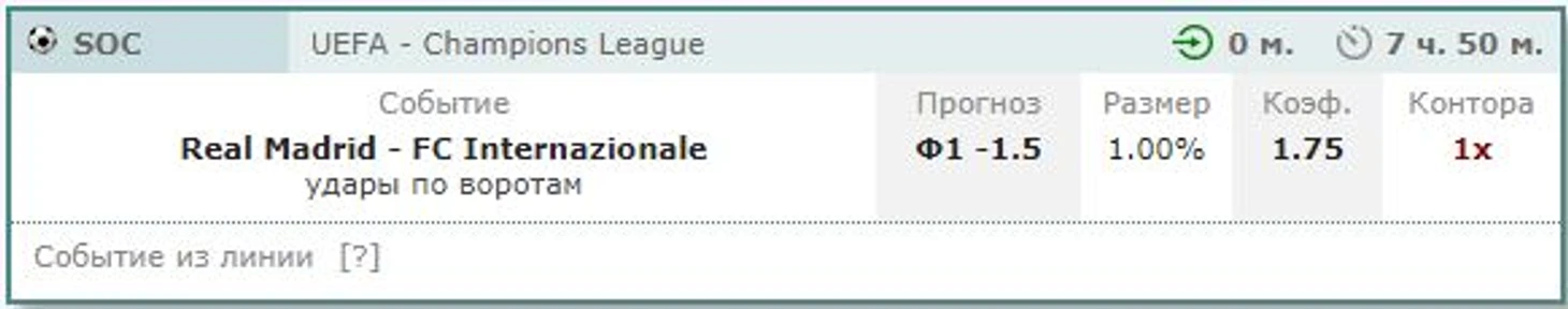 P.S. Были мысли и по поводу Реал больше 1.5, и по поводу победы Реала, но у Интера то же не всё хорошо в группе, поэтому оставлю только этот вариант на удары. Так же сегодня, возможно,посмотрим что-нибудь на матч Аякса, но это ближе к старту игры, когда выйдут составы, потому что у голландцев вспышка короны в команде.