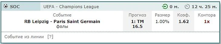 Лейпциг - ПСЖ, фолы Лейпциг ТМ 16.5 (1.62) 1xbet
