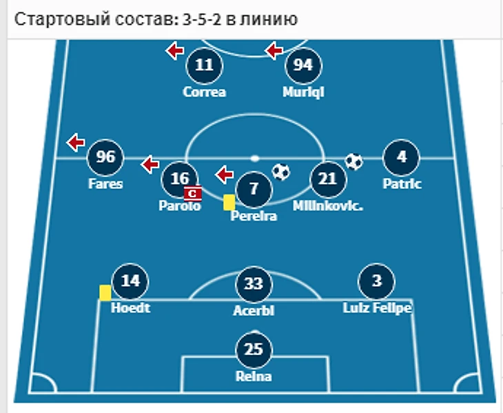 У Лацио потерь еще больше: Прото и Стракоша (В), а так же полевые Лейва, Альберто, Иммобиле, эти трое важнейшие игроки атаки. Ну и почти не играющие Андерсон, Раду и Эскаланте.Каких либо изменений в тактике не будет, те же 3-5-2 что и всегда, пару Корреа составит фактурный Мурики, с его 194 см, размен на Ракитского будет желательным. В полузащите Милинкович-Савич, Пароло, итальянцы пишут что нужно ожидать Акпа Акпро и Марусича, а так же Фареса что выливается в 5-3-2 при игре в защите. Это значит что правый защитник Марусич будет часто спускаться и делать схему 4-4-2, что не сулит Зениту вообще ничего хорошего. В защите тройка основных Ачерби, Фелипе и Хоэдт. Рейна на воротах.