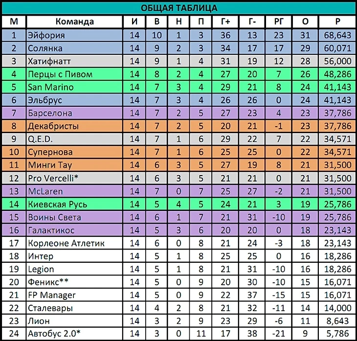 Регулярный чемпионат осень-2020. 14 тур.