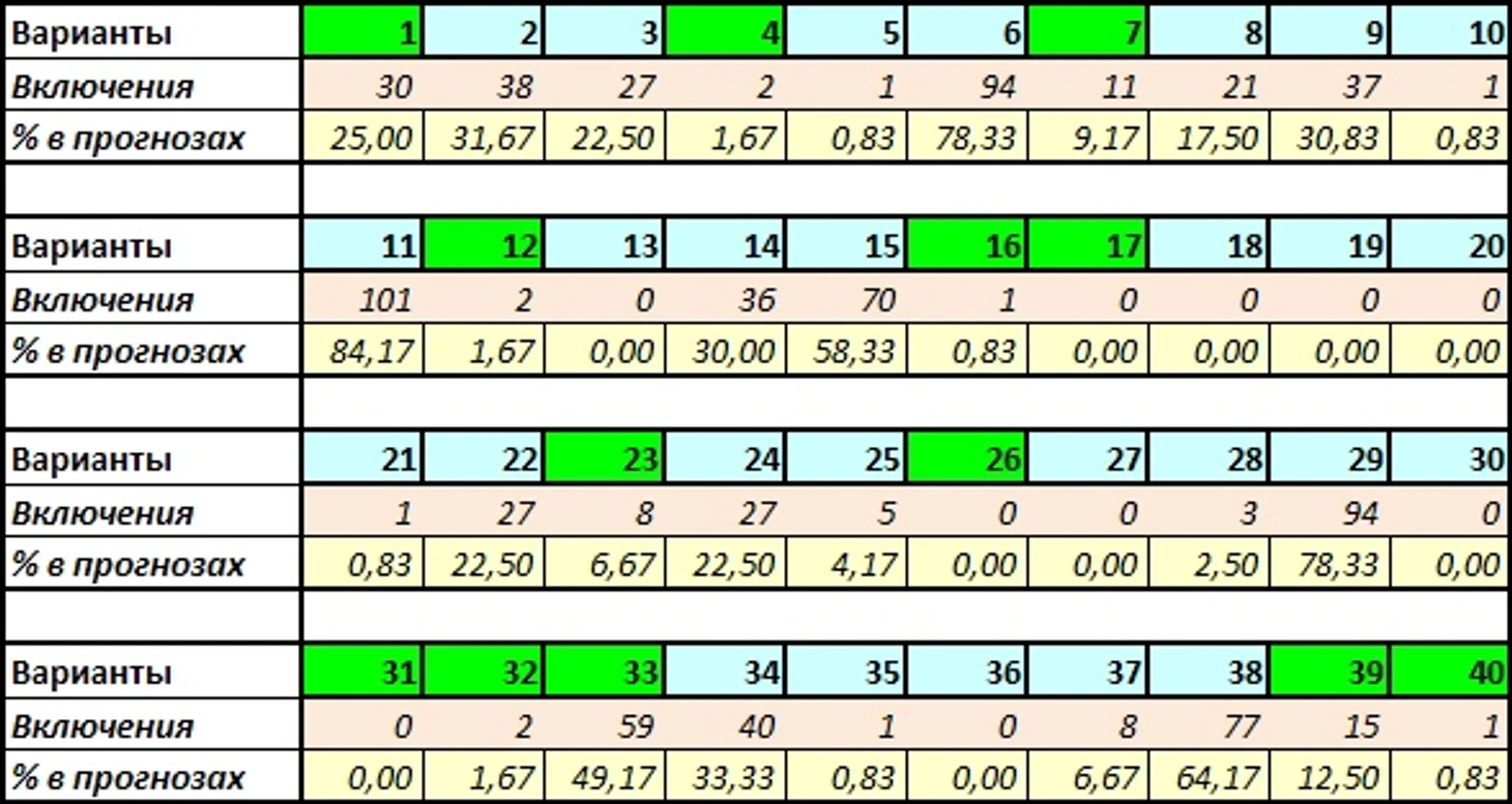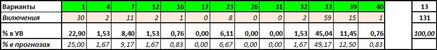 Сумма угаданных вариантов: 131 из 840 (15,6%)