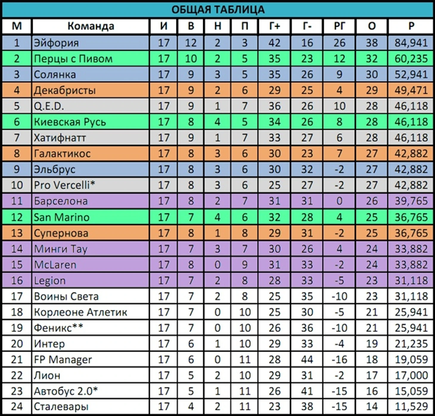 Его я решился отметить, потому что беспроигрышные серии команд были внушительнее. Борьба шла, как и положено в таких матчах, на суженном поле в 14 СВ. Гости большим числом вложились в вариант 33, зато у хозяев на двух линиях стояла связка 1-7. Таким образом, Перцы проиграли, а по итогу 17-го тура отрыв Эйфории от них лишь увеличился.