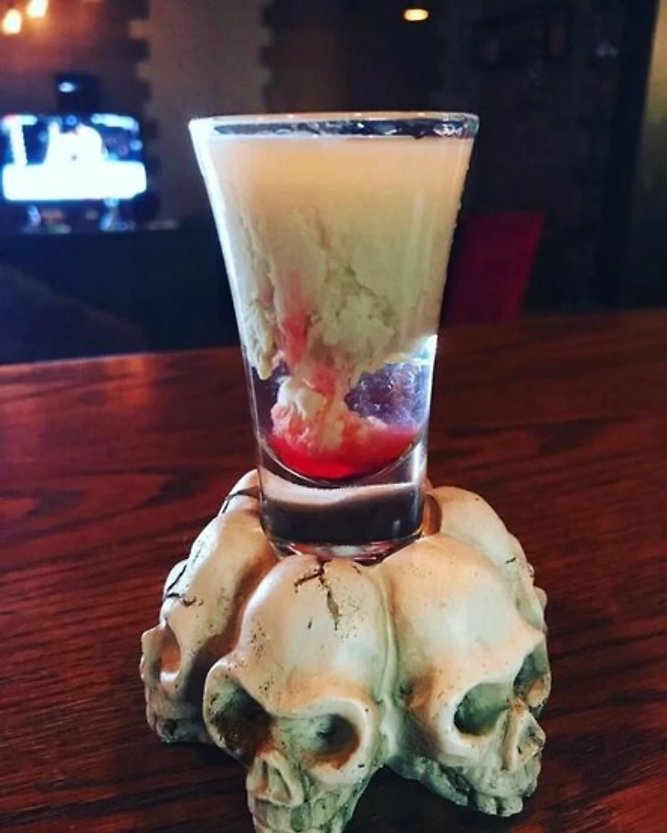 - Метод смешивания – укладка компонентов слоями (но из-за разной плотности напитков кажется, что на дне находятся фрагменты мозов);