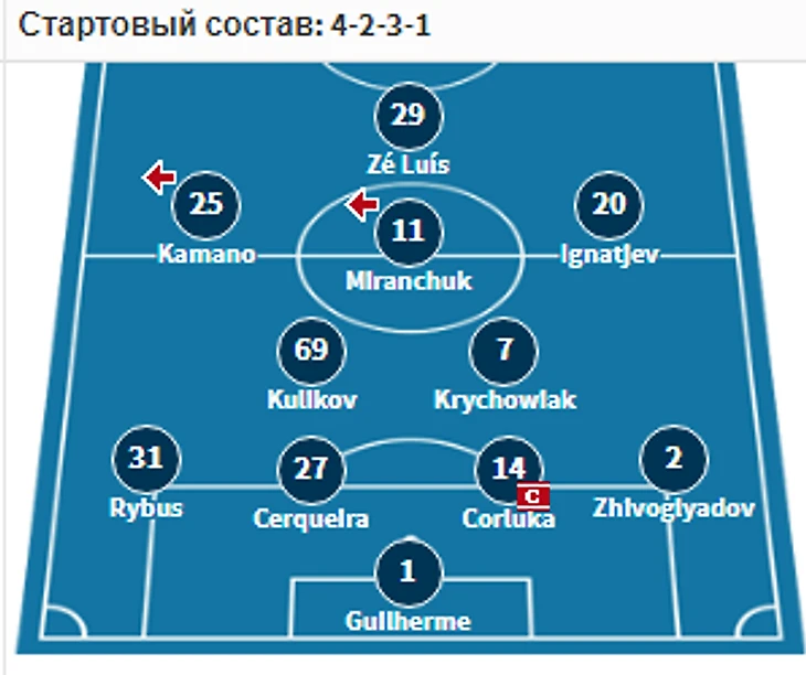 Николич явно готовился к этому поединку во внутреннем первенстве, где скатали 0-0 с Ахматом, поэтому схема 4-5-1 это однозначно правильная схема на сегодня. На острие Зе Луиш, помогать ему будут Миранчук, под ним Крыховяк и Куликов, на флангах атаки Игнатьев и Камано, больше как бы и некого ставить, а в игру 4-4-2 я не очень верю, лучше насытить центр поля и не дать Зальцбургу создавать моменты. В защите Чорлука и Мурило, на флангах Рыбус и Живоглядов, Гильерме на воротах.