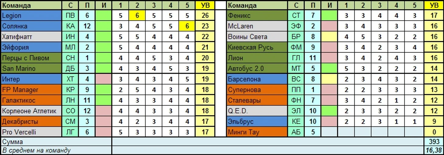 Лучшая команда тура по сумме УВ в целом: Legion – 26 вариантов