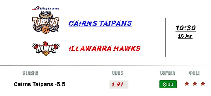 💬 Наконец то начался чемпионат Австралии, пока я в нем иду 3 из 4 точными, надеюсь завтра с утра продлю победную поступь, мне этот поединок очень зашел в плане ставок. Я не понимаю откуда у Иллавары шансы на победу в "северном" Кэрнсе, куда им лететь почти 3 тыс. км. Ведь "Тайпанс" домашняя команда, что и продемонстрировали в матче с Сиднеем, на классе их обыграв. Я здесь склонялся к +4.5 на Сидней, и даже их победе, как видим был прав. А вот победа "Хоукс" в гостях над Брисбеном застала меня в расплох. Я изучил состав Илловары и не понимаю как они умудрились выиграть (пока не изучал Брисбен).