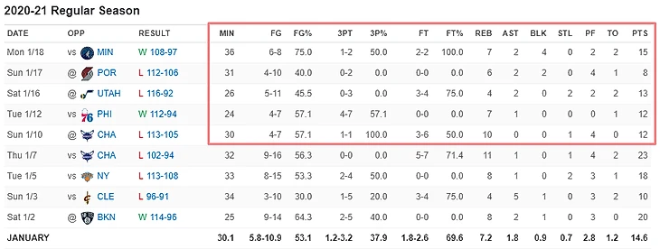 Еще одна причина почему посыпалась Атланта, это конечно Янг, парень сдал и сдал сильно, в январе у него 18.4 очков при 33.3% с игры и 24% издали! у него ни одного хорошего матча, да и оно понятно, пасовать даже некому, Реддиш до сих пор травмирован, но возможно сегодня выйдет, пока под вопросом, его 37.8% с игры "явно не хватает" команде, в основе остается Хьюртер и Хантер, оба неплохо попадают издали и в целом хорошие игроки, а вот скамейка у Атланты пострадала очень сильно, сейчас там остались Гудвин - 32.8% с игры, Хилл - 35.8%, Оконгву - 33.3%, Снелл - 36.4%, Рондо - 26.3%!