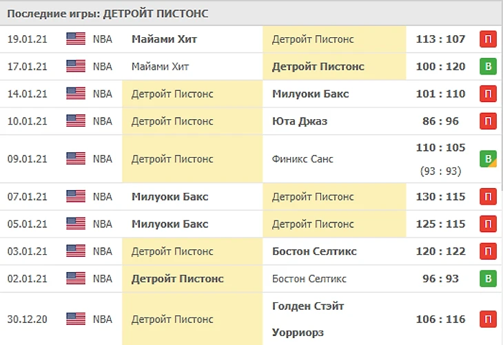 Детройт и Атланта на №28 и №30 месте в лиге по точности в последних 5 матчах,