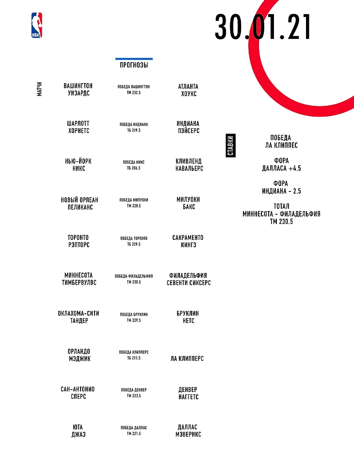 Прогнозы на 30.01.21