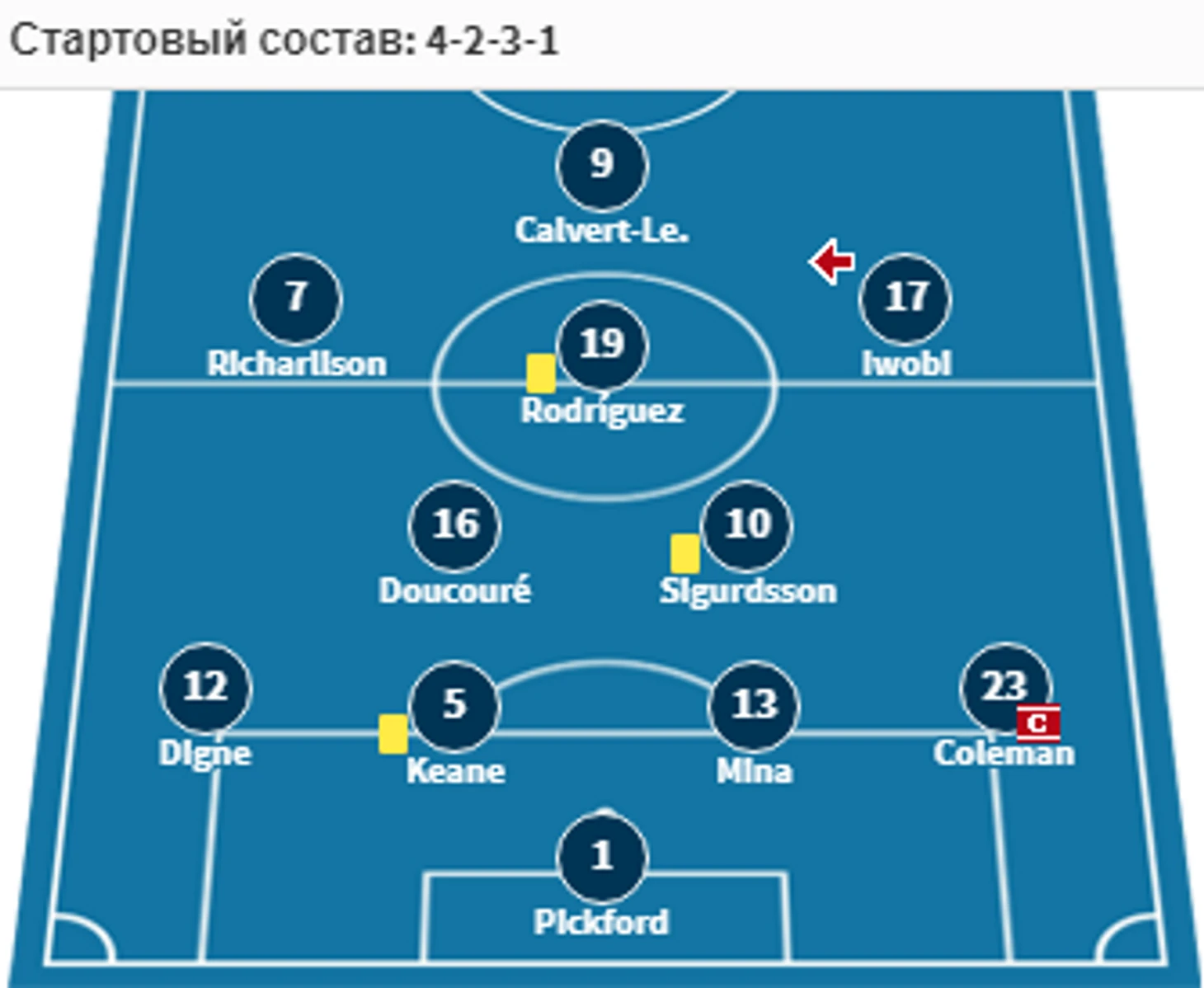 PREDICTED XI (4-3-1-2): Olsen; Coleman, Mina, Keane, Digne; Doucoure, Andre Gomes, Sigurdsson; James Rodriguez; Calvert-Lewin, Richarlison