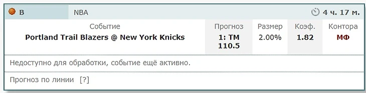 Мне кажется, сегодня у нас есть все шансы увидеть низовой матч. Никс играют медленно, у Портленда шестая выездная игра в ряд, накопилась усталость, есть кадровые потери. Также не стоит списывать со счетов раннее начало матча, что в большинстве случаев не идет на пользу результативности. Так что 110 меньше Портленда весьма неплохой вариант.