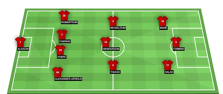 Probable Lineup (4-3-3): Alisson; Alexander-Arnold, Kabak, Fabinho, Robertson; Thiago, Henderson, Wijnaldum; Salah, Firmino, Mane