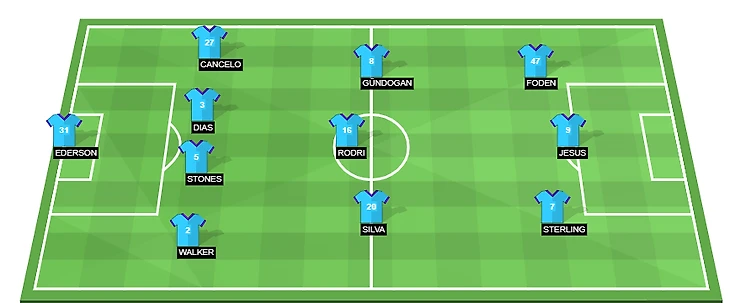 Probable Lineup (4-3-3): Ederson; Walker, Stones, Dias, Cancelo; Silva, Rodri, Gundogan; Sterling, Jesus, Foden