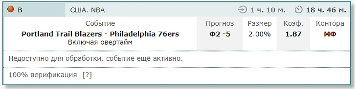 Вот эти 40 очков Портленда в третьей четверти игры недельной давности чисто совпадения. Называется полетело. Уверен, сегодня будет совсем другая игра. Конечно никто не отменял 50-очковый перфоменс Лилларда или что-то типа 50% с периметра от Блейзерс. Ну или 25% Филадельфии с периметра. Но для меня здесь фаворит очевиден. Эмбииду в посте равных нет, Сиксерс должны быть мотивированные после вот такого щелчка по носу и банально забрать игру за счет защиты. Букмекеры дают -5 очков форы на гостей. Предлагаю проверить.
