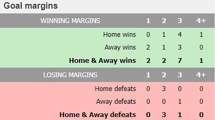 Статистика: 12 побед, 7 ничьих, 4 поражения (дома 6-3-3; выезд 6-4-1)