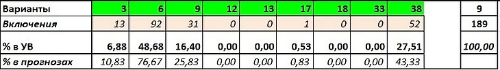 Сыграно вариантов: 9 (3-6-9-12-1-17-18-33-38)