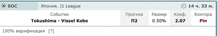 4) Токушима - Кобе П2 за 2.37 по пинке.