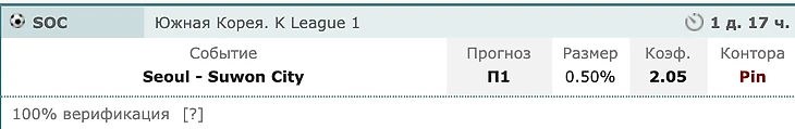 6) Сеул - Сувон П1 за 2.12 по пинке.