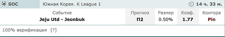 2) Чэджу Юнайтед - Чонбук П2 за 1.78 по пинке.