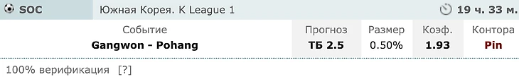 5) Канвон - Пхохан ТБ2.5 за 1.93 по пинке.