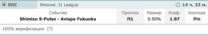 3) Симидзу - Фукока П1 за 1.95 по пинке.