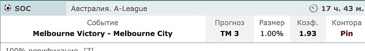 10) Мельбурн Виктори - Мельбурн Сити ТМ3 за 1.96 по пинке.