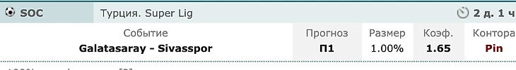 8) Галатасарай - Сивасспор П1 за 1.69 по пинке.